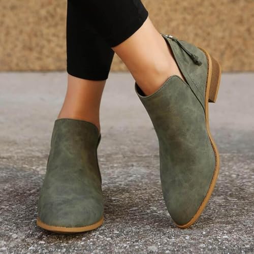 Womens Ankle Boots V Cutout Pointed Toe Chunky Low Heel Booties timeless Western Boots Faux Suede Slip on Booties