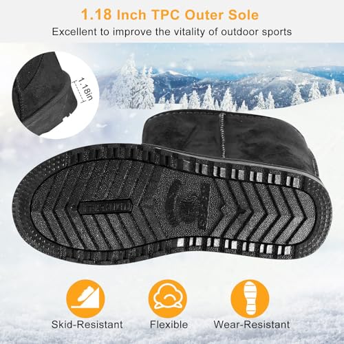• 【Anti-Slip & Wear-Resistant】: 1.19 inch TPC outer sole provides increased traction, durability, cushioning, flexibility and skid resistance. Excellently improve the vitality of outdoor sports with these snow boots.