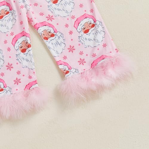 Fabric type: 100% PolyesterCare instructions: Machine WashOrigin: ImportedMATERIAL: Baby and toddler kids girls pajamas made of 100% polyester, satin feather trim toddler Christmas pajamas boutique outfit, super soft silk feeling, lightweight and cozy. ultra soft toddler girl pajamas sleepwear, brings baby girl more breathble, comfortable and skin-friendly feelingDESIGN: Toddler little girl Christmas pajamas, cute santa claus bow print Christmas pjs, feather trim pajamas,toddler button up pajamas, long sleeve button down sleep shirts, toddler girl Christmas jammies, baby girl satin Christmas pajama, cute sleepwearOCCASION: Christmas pjs for girls, Perfect for pajamas party, photography, holiday, vacation, Thanksgiving, Christmas, birthday gift, Christmas baby girl outfits, Christmas girls outfit, baby and toddler little sister big sister matching pajamas jammies,girls 2 piece Christmas pajamas outfitSIZE: Suit for 1-9 Years girls, 12-18 month girl pajamas, 18-24 month girl pajamas, one year old pajamas, 2t girl nightgown, toddler pajamas 2t, toddler pajamas 3t, 4t pajamas girls, 5t pajamas girls, 6 years, 7 years, kids little big girl two piece pajamas set size 6 7 8 9PACKAGE: 1 Sleep shirts and 1 sleep pants, girls satin silk pajamas, toddler santa nightgown, casual loungewear, satin silk pjs for toddler girls, your little one will love this cute pajamas Perfect for everyday use. finest materials and excellent craftsmanship ensure long-lasting durability.