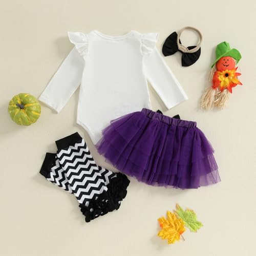 More information about My 1st Halloween Baby Girl Outfit Ruffle Long Sleeve Romper Tulle Tutu Skirt Headband Leg Warmer Clothes Set