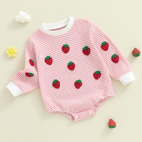 Baby Girl Fall Outfits Long Sleeve Strawberry Sweatshirt Bubble Romper Newborn Stripe Bodysuit Cute Infant Clothes
