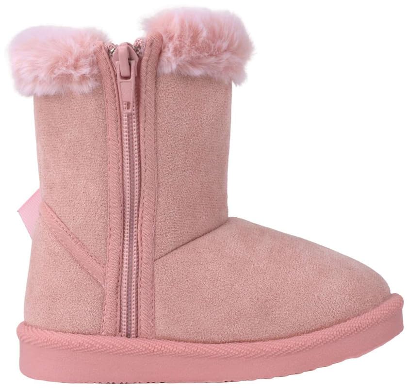 Girls’ Suede Bow Winter Boots, Faux-Fur Lined Snow Boot with Side-Zip, Lightweight Anti-Slip TPR Sole, heated Toddler & Little Kid Shoes (US 4-13)