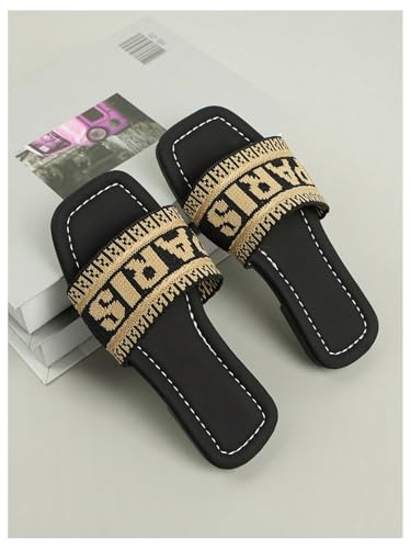 trending ! GORGLITTER Girl's Letter Graphic Crochet Flat Sandals Square Open Toe Slip on Slides