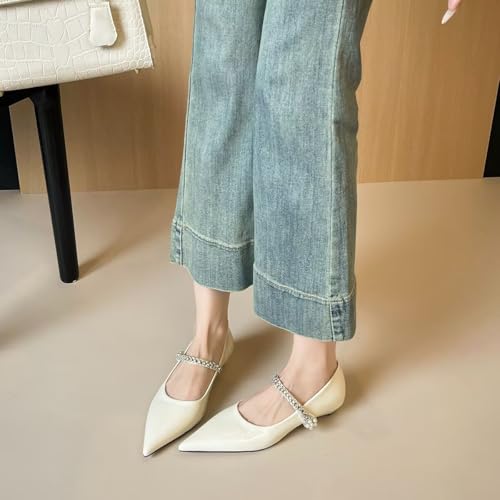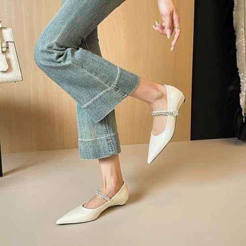 ChaiRong Zhou Women Pointed Toe Mary Jane Shoes Hook and Loop Rhinestone Strap Patent Leather Flats Casual Ballet Dress Shoes