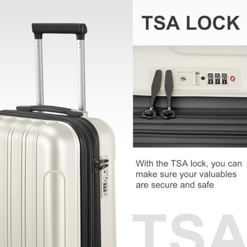 1.Made of lightweight and durable PC+ABS material, with an impact-resistant hard shell,2.A recessed TSA-approved lock is found on the side of the case that allows only TSA agents to open and inspect your bag without damaging the lock.3.360° Silent Spinner Wheels provide superior maneuverability, easy and smooth movement in any direction.Handles:Telescopic, 3-step adjustable recessed handle 1 attached cushioned comfort-grip top handle.4.Side bumper feet:The bumper feet are strategically placed to elevate the luggage slightly above the ground, preventing wear and tear over time.5.Expandable 20 inch Suitcase: Open the smooth and durable expandable zipper, can expand the capacity of the suitcase by 20%. smooth handles on the top and sides of the luggage help you lift the suitcase easily without hurting your fingers. Perfect for everyday use. finest materials and excellent craftsmanship ensure long-lasting durability.