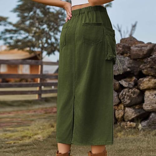 trending ! Women's Maxi Long Denim Skirts High Waist Split A line Flare Jean Skirt Y2k Cargo Casual Jean Skirts with Pockets