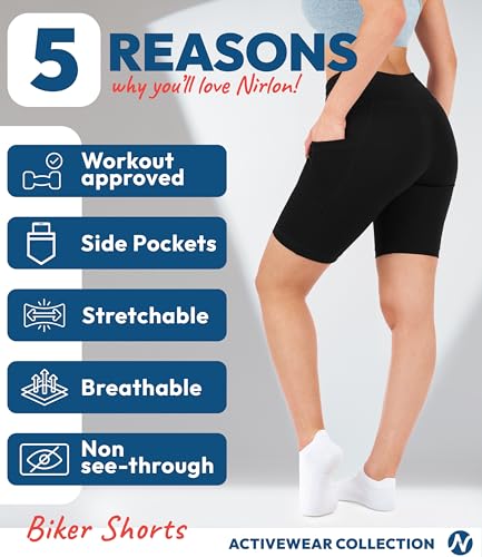 trending ! Nirlon Biker Shorts with Pockets - Biker Shorts Women Workout Shorts for Gym & Yoga Shorts for Women Plus Size Biker Shorts