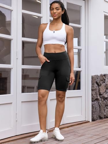 • Cargo Pocket:Biker shorts for women with 2 side flap cargo-style pockets and 2 front functional pockets to keep your phone, keys, or cards secure during running, cycling, or athletic activities