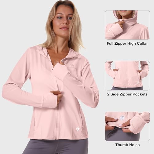 CAMELSPORTS Women UPF 50+ Athletic Jacket Sun Protection Long Sleeve Hiking Shirts Lightweight Outdoor Hoodie with Pocket
