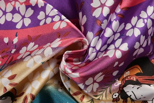 • Satin kimono bathrobe has different styles, assorted featuring floral with Japanese style figures, and others featuring patterns with Japanese style figures. Calf-length, with two functional deep pockets on the front for little items, and a looped self-tie with internal lacing.