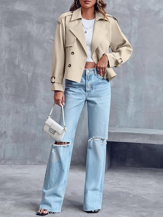 Why Choose utcoco Women's Cropped Trench Coat Double-Breasted Short Trench Jacket Notch Long Sleeve Fall Outfit?