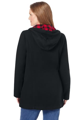 trending ! Woman Within Plus Size Flannel-Lined Denim Jacket Removable Hood Long Oversized Jean Coat