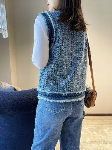 Fabric type: Cotton, PolyesterCare instructions: Machine WashOrigin: ImportedMATERIAL: Made of finest fabric, soft and comfortable, simple and fashion, giving you the ultimate comfort experience.FEATURES: Women's sleeveless tweed vest features that crew neck, tassel, single-breasted, collarless, sleeveless, pockets on the front, slim fit, solid color, casual style. Unlike the design of ordinary denim vests, allowing you to fully showcase your beauty in the crowd.MATCH: Our tweed jacket can match with shirts, leggings, jeans, watches, sneakers and so on. Relaxed and comfortable to wear for daily day and special day.OCCASIONS: Women's fashionable and classic style denim vest is great for casual, holiday, vacation, office, school, party, shopping, dating, lounge and daily etc. Showcasing the exceptional charm of fashionable women. WASHING INSTRUCTIONS: Hand wash or machine wash, recommend with a laundry bag, please do not bleach, hang or line dry. Perfect for everyday use. High quality materials and excellent craftsmanship ensure long-lasting durability.