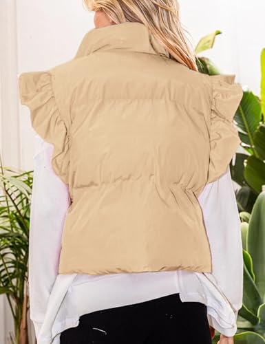 - Features - This vest tops for women have a ruffle sleeve, stand collar, and solid color. The cropped puffer vest women are necessary in your fall and winter wardrobe