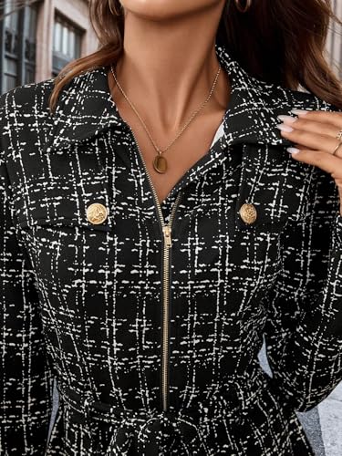 More information about Casual jackets for women Slim Fit A-Line Lapel Black & White Plaid Coat For