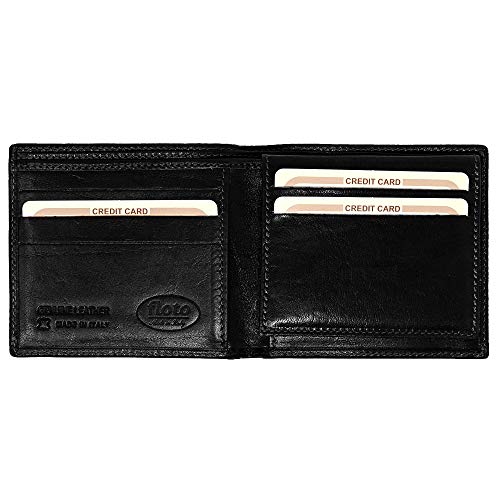 Fabric type: Full Grain Calfskin LeatherCare instructions: Dry Cloth CleanOrigin: Made in ItalyCLASSY AND TIMELESS - whether you are looking for a new wallet or searching for the perfect gift, this bifold wallet is luxurious, practical, and stylish. This classic billfold will beg people to ask - where did you get that wallet? Get compliments and build confidence with a genuine Floto leather wallet.ITALIAN CRAFTSMANSHIP - this leather billfold wallet was handcrafted in Italy with full grain calfskin leather. This natural leather patina's beautifully over time and gets better with age. Precision stitching and wrapped leather edges make this leather wallet stand out from the crowd.DESIGN FEATURES - the minimalist design of this leather wallet makes it practical and stylish. It has 8 card pockets, a flap over I.D. window pocket, 2 bill compartments, and 2 multi-function pockets. Wallet measures: 4w x 3.5hSLIM PROFILE - this bifold wallet measures approximately 1/2 thick so it provides easy access to your money and cards without being too bulky.FLOTO ORIGINAL β this men's leather wallet is made from full-grain calfskin leather that was hand stained in the heart of Tuscany to patina and look better over time. Each leather skin has a unique pattern created by this artisan tanning technique so there will only be one wallet like yours in the world. Perfect for everyday use. excellent materials and excellent craftsmanship ensure long-lasting durability.