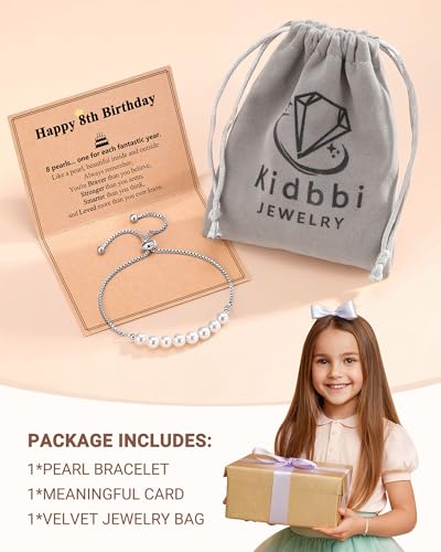 Metal type: Stainless SteelChain type: Delicate ChainGem type: No gemstoneItem type name: Charm Bracelets8 Year Old Girl Birthday Gifts: The pearl bracelet gift is a perfect choice for your beloved 8-year-old girl's birthday. Reminder her that You are braver than you believed, stronger than you seem, smarter than you think and loved more than you knowPearl Bracelet: Give this bracelet to your daughter, granddaughter, niece, teenage girls on her birthday, let her know that You make a wonderful member, like a pearl, stunning inside and outGrows with Her Wrist: Featuring a sliding closure, this bracelet adjusts up to 10 inches for a comfortable, secure fit as she grows. A timeless piece she can wear now and cherish for yearsDelicate and Thoughtful Design: A single white pearl symbolizes purity and love, resting at the center of a delicate chain. Its clean and elegant look makes it perfect for both everyday wear and special occasionsKidbbi After-Sales Service: We are here to assist you. If you have any questions about the product, please let us know Perfect for everyday use. finest materials and excellent craftsmanship ensure long-lasting durability.