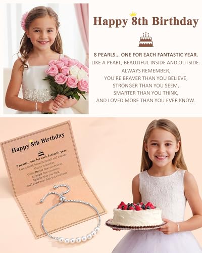 Pearl Bracelet 8 Year Old Birthday Gifts for Daughter Granddaughter Niece