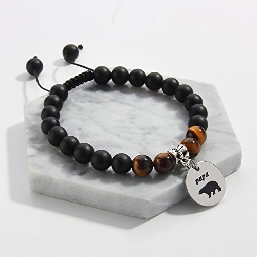 More information about Papa Bear Daddy's Girl Natural Stone Macrame Beads Bracelet Matching Set Bracelet for Father and Daughter