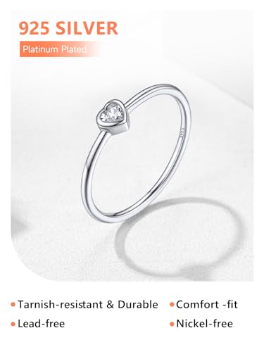 Silvora 925 Sterling Silver easy Black Heart Ring Tiny Heart Wedding Band Rings for Women Size 4-12