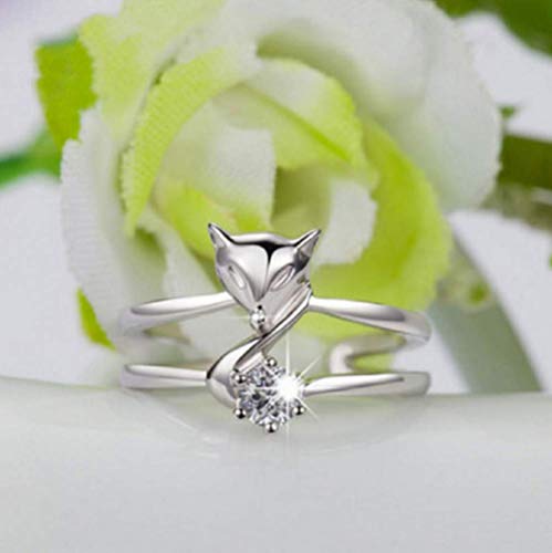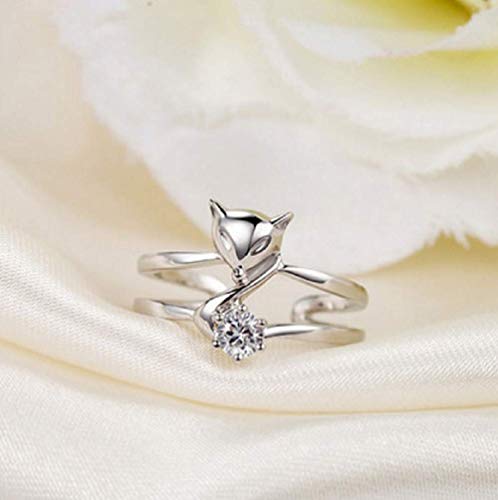 More information about Lzz Plated 925 Silver Ring Fox Ring Cute Animal Adjustable Crystal Ring Inlaid White Cubic Zirconia Ring