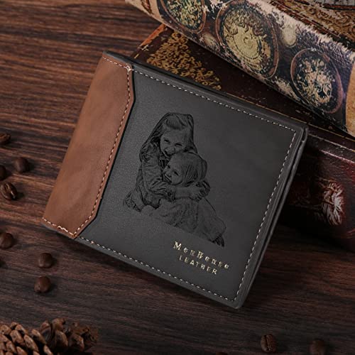 INBLUE Personalized Engraved Bifold Wallet, Custom Leather Wallet with Photo & Text Engraved, Gifts for Men Husband Dad Son Groomsmen(S3 Black)