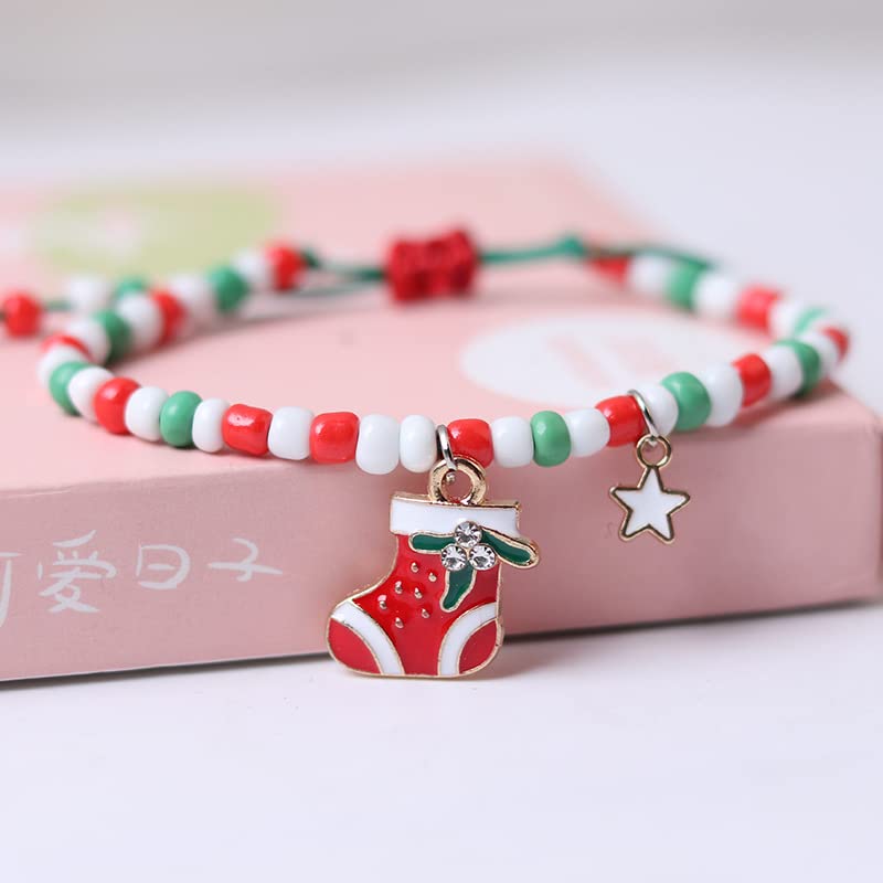 Pingyongchang Christmas Jingle Bell Bracelets Xmas Adjustable Beaded Charm Pendants String Bangle Bracelet Gift Jewelry Christmas Stocking Stuffers Holiday Party Favors for Women Girls Kids
