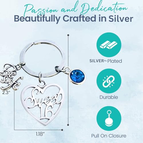 Sweet 16 Heart Pendant for Her Milestone Birthday - The delicate open-heart charm engraved with “Sweet 16” celebrates this unforgettable chapter in her life. A timeless keepsake she’ll carry every day.Meaningful “Be Safe” Charm - This elegant charm says what every parent, sibling, or friend wants her to remember — stay safe, be strong, and know you’re loved.Includes Her Birthstone for a Personal Touch - Choose her birth month to add a colorful crystal charm that makes the keychain even more personal. It’s a thoughtful way to connect the gift to her story.rugged and Lightweight for Everyday Use - Crafted from silver-plated stainless steel, this keychain is strong enough for daily wear — perfect for keys, bags, or backpacks — without weighing her down.Hand-Assembled by a USA Family Business - Every keychain is thoughtfully designed and packaged by our small family-run brand. Your order supports handcrafted quality and meaningful gifting. Perfect for everyday use. excellent materials and excellent craftsmanship ensure long-lasting durability.