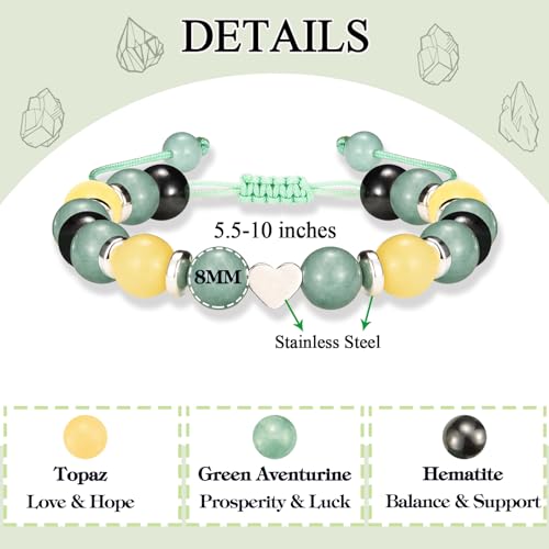 • Fabulous Birthday Bracelet: This birthday bracelet for girls is made of high-quality 8MM natural stones (Green Aventurine+Topaz+Hematite, bring positive energy and emotions, lucky and confidence.) , stainless steel beads and a heart charm, resilient and not simple to break, suitable for long-term wearing. Exquisite design to make your little girl look more different.