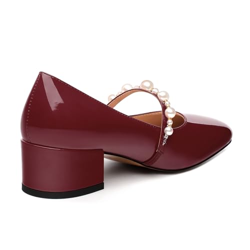 Cute Mary Jane Shoes for Women Chunky Heel Round Closed Toe Patent Pumps Casual Comfort Fashion Wedding Dress Shoes 2 Inch