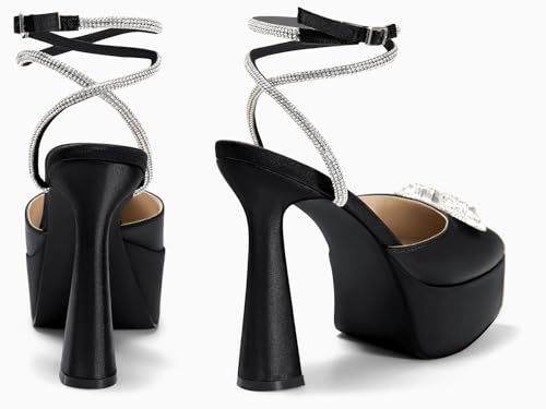 Fabric type: Satin FabricOrigin: ImportedSole material: RubberPlatform height: 2.00Material: Womens platform heels made of smooth satin and rubber out-sole, soft padded insole brings you lots of comfySexy Heels: Set on an flared high heel measures approx 13cm/5.16inch, make your legs look slender and highlight the sexy and charming curves of women. Height 5.3cm/2inch platform with anti-slip sole, more cozy and stableFeature: Closed pointy toe, chunky block sculpture heel, sparkle ankle straps and cute crystal triple hearts, high heels for women, you can release your charm to the fullestAll Matched: Whether it is a dress, or a T-shirt, jeans, pants, shorts, business wear, platform heels for women can be easily matched. With exquisite and elegant design, incorporate unlimited romantic inspiration, making them a must-have in your wardrobeOccasion: With these platform high heel pumps shoes, you can put a perfect finish on any outfit for casual, dance, event, party, work, date, wedding, cocktail, nightclub, homecoming or other special occasions Perfect for everyday use. finest materials and excellent craftsmanship ensure long-lasting durability.