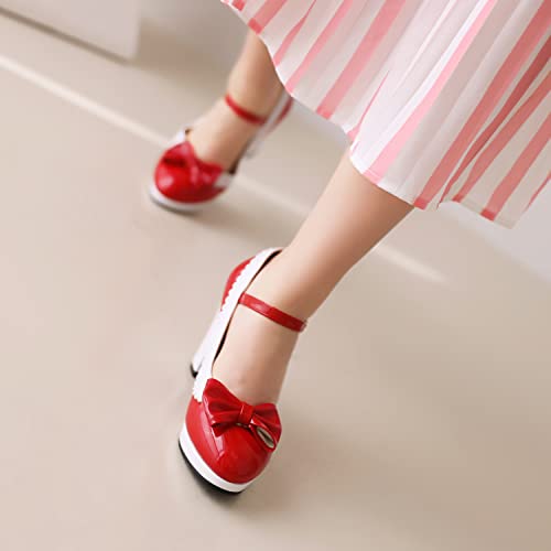 Betastella Women's 1950s Rockabilly Shoes Chunky Mary Janes Platform Patent Leather Block Heel Ankle Strap Pumps Cute Bow Cosplay Shoes