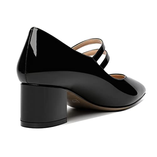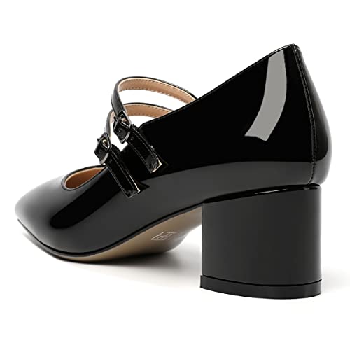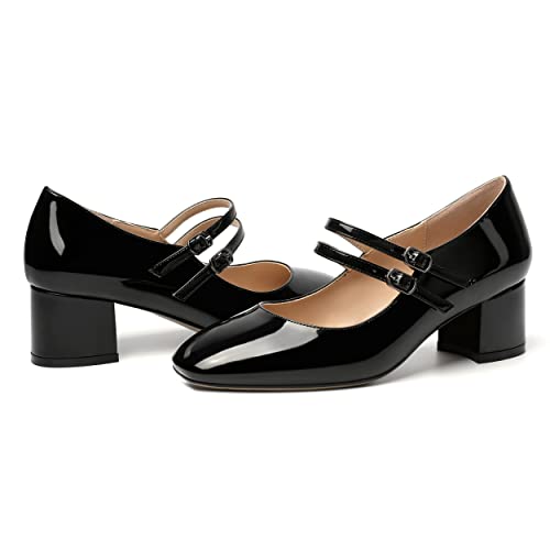 trending ! SHOWFOREST Women's Dating Buckle Cute Square Toe Solid Patent Block Low Heel Pumps Shoes 2 Inch