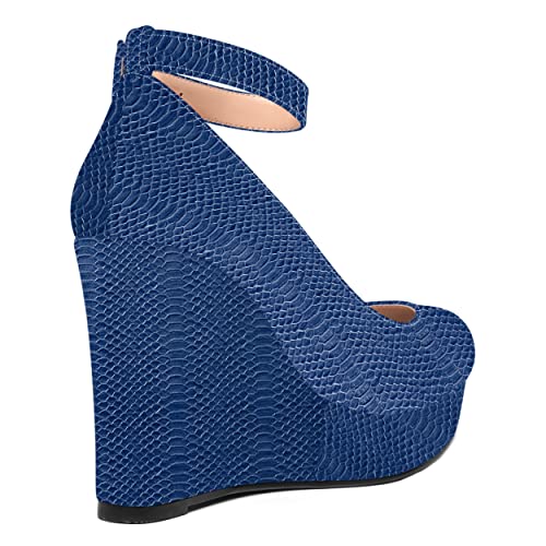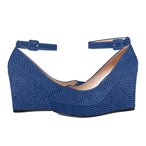 MOVINSTEPS Womens Round Toe Platform Ankle Strap Patent Night Club Sexy Buckle Wedge High Heel Pumps Shoes 4 Inch