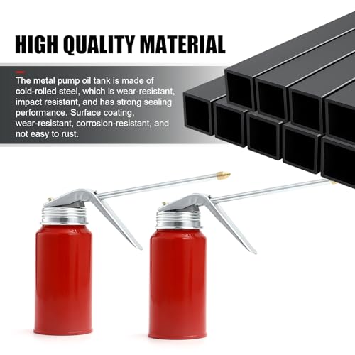 2 PCS Metal Pump Oil Can, 200ml Oil Dispenser with Spout, Cold Rolled Steel Oil Spray Can for Auto Motorcycles Bicycles Home Appliances, Manual Pump Oiler for Lubrication