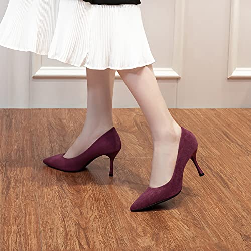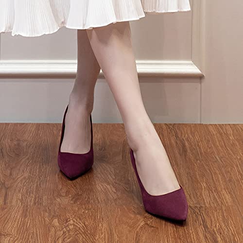 trending ! LUXINYU,Women Pointed Toe Heels Fashion Shiny Elegant Ladies Pumps Solid Stiletto Suede velvety Heeled Dress Shoes Comfort Work Formal Shoes