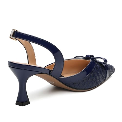 Women's Pointed Toe Buckle Slingback Shoes, Kitten Low Heel Woven Pumps for Women, Shallow Shoes for Party,Date,Office