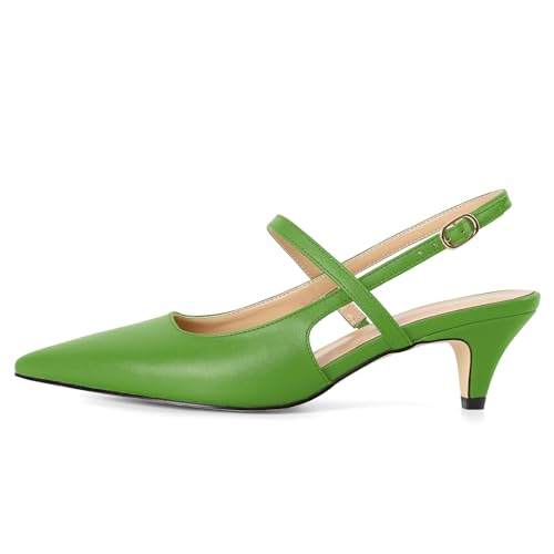 trending ! AUMOTED Kitten Low Heels for Womens Slingback Mary Janes Shoes Closed Pointed Toe Pumps Matte Leather 2 Inch Party Dress Shoes