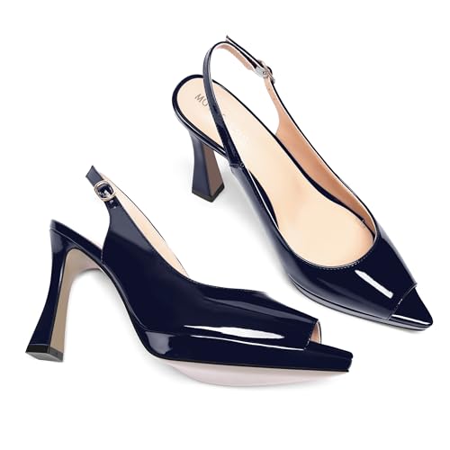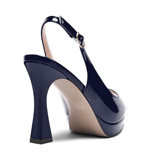 MOVINSTEPS Womens Buckle Fashion Adjustable Strap Patent Wedding Pointed Toe Platform Spool High Heel Pumps Shoes 4 Inch
