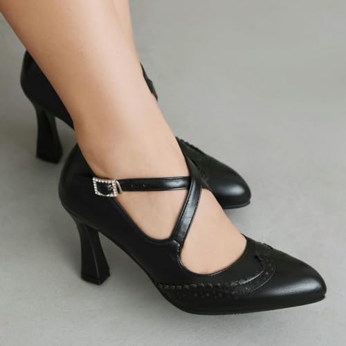 More information about DINTAHA Mary Jane Heels Vintage 1950s Shoes,Oxford Heels for Women,Retro Pointed Toe Dress Pumps