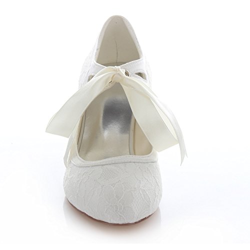 Emily Bridal Wedding Shoes Women's Lace Spool Heel Closed Toe Pumps