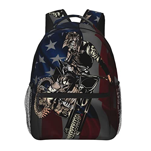 trending ! Motocross Dirt Bike American Flag Backpack Motorcycle Biker Double Shoulder Bag Laptop Bagpack for Men Women Bookbag for Work Camping Travel
