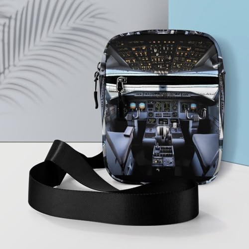 More information about Personalized Small Crossbody Bag Water Resistant Messenger Bags Mini Airplane Cockpit Printing SlingBag For Men Women