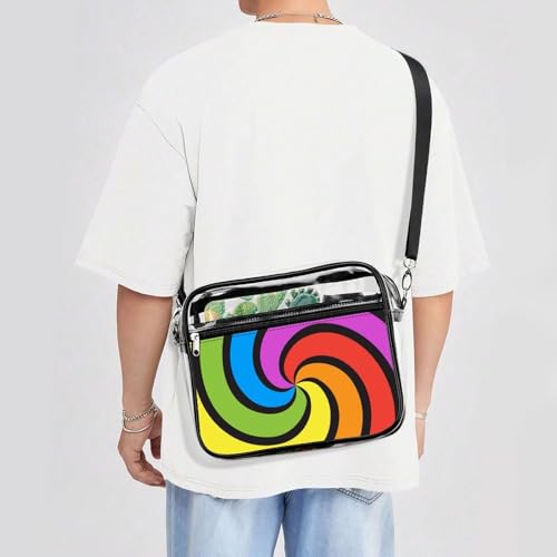 Rainbow Swirl Large Crossbody Bag Clear Stadium Bag Anti-Theft Side Shoulder Bags Messenger Bag with 2 Compartments