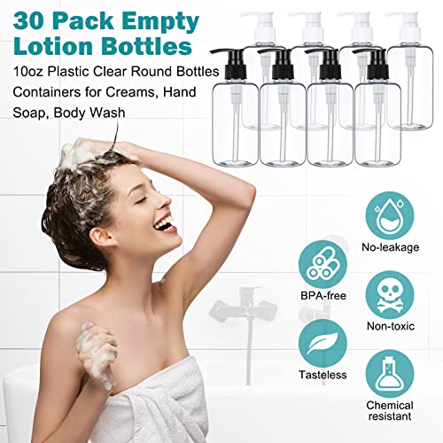trending ! 30 Pcs 10 oz Plastic Pump Bottle Dispenser Empty Lotion Bottle with Pump Refillable Clear Hand Soap Dispenser Portable Travel Lotion Container for Body Wash Liquid Soap Shampoo Essential Oil, 2 Colors