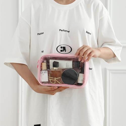 • Clear Design: The clear travel makeup bag has a transparent PVC material on one side, which complies with TSA. so you can easily and quickly pass through security screening with it in the airport. Our cosmetic bag has merely the right amount of space, measuring 8.3" * 2.8" * 5.5", with plenty of storage space.