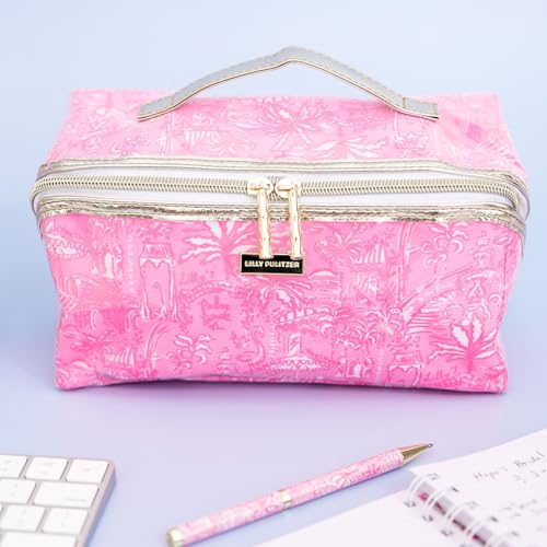 Why Choose Lilly Pulitzer Travel Cosmetic Case, Lay Flat Zipper Carryall Pouch with Wipeable Lining (Palm Beach Playground)?