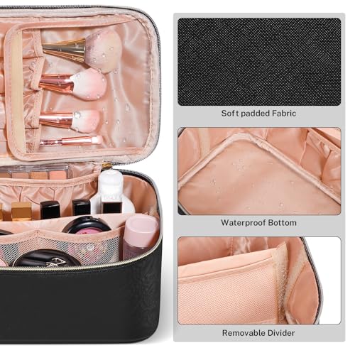 trending ! senbowe Travel Makeup Bag, Large Capacity Cosmetic Bags for Women,Portable Waterproof Leather Toiletry Bag Make Up Organizer Bag with Divider and Handle