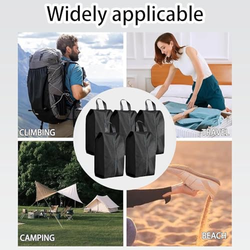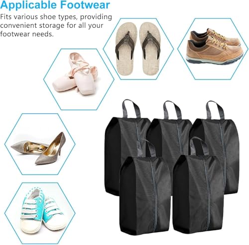 5Pcs XL Travel Shoe Bags Portable Travel Gifts Shoe Organizer with Zipper Closure, Waterproof Nylon Shoe Storage Organizer with Handle Travel Bags For Men and Women, Black