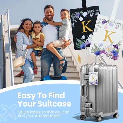 2 Pack PU Leahter Luggage Tags with PU Leather Straps, Fun Travel case Labels, Privacy-Protected ID Card Holders, Allowing for speedy Identification of Luggage and straightforward locating of Your Bags (K)